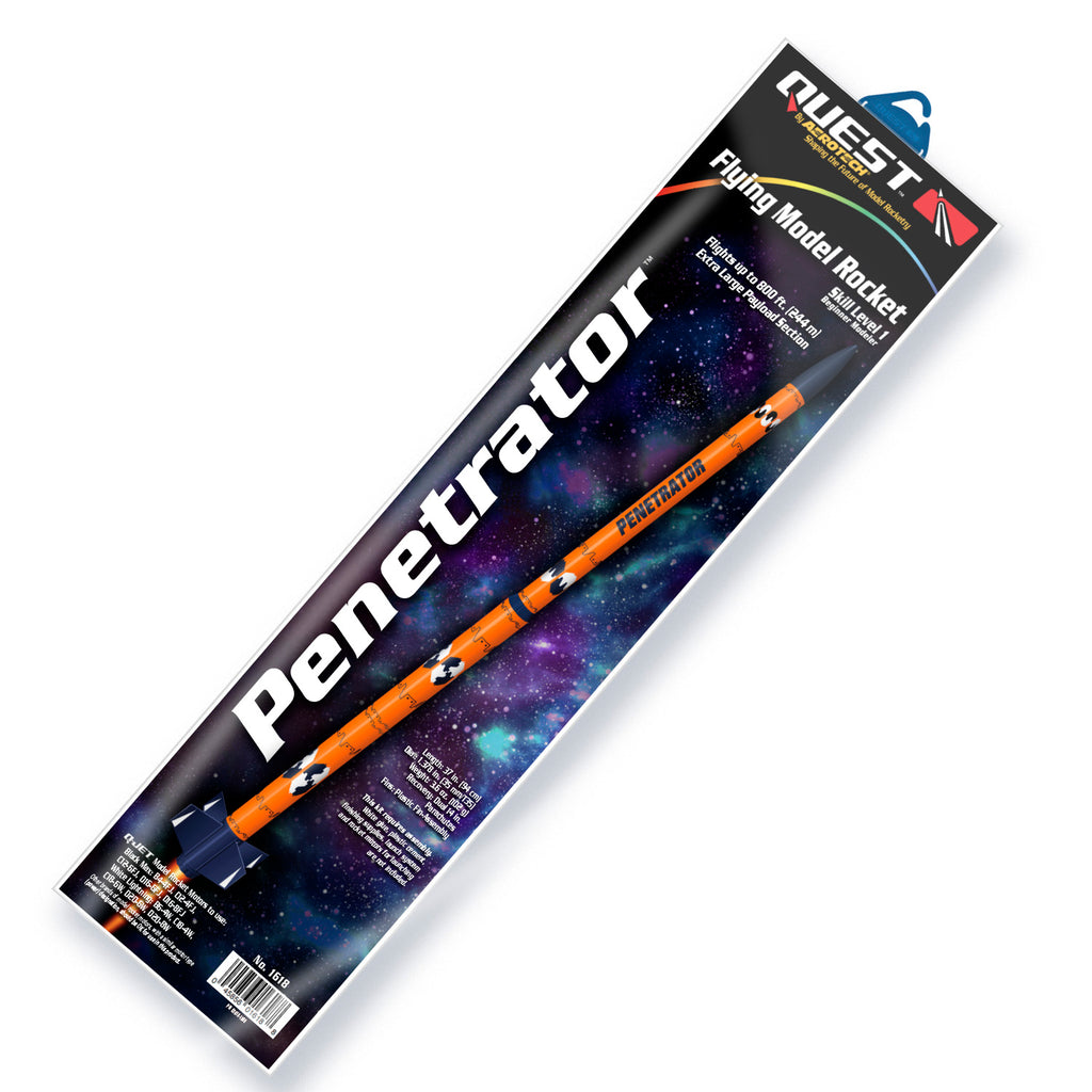 Modeled to resemble an Inter-Continental Ballistic Missile, the Quest Penetrator Quick-Kit looks every bit the part. At 38 inches long the Penetrator model rocket is one of the largest of the Quick-Kit fleet and is quite a sight lifting off the launch pad.