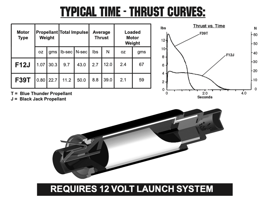 The AeroTech Reloadable Motor System RMS is an aluminum cased reusable motor in kit form that is assembled by the user. You will need AeroTech RMS-24/40 motor hardware to build and complete the motor for many reliable flights. Motor hardware is available separately in a complete set, and also as individual parts. Important: Mid Power RMS reload kits are not compatible with High Power RMS products. This RMS motor reload utilizes RCSs exclusive Black Jack™ aerospace grade composite propellant formulation, which produces a visible black exhaust plume and a denser dark tracking smoke. Black Jack™ motors provide a higher level of thrust than White Lightning™ motors of the same total impulse and are perfect for high lift-off acceleration.