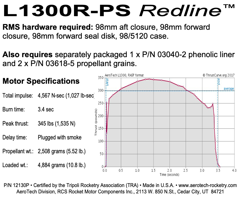 Maximum Liftoff Weight: Due to the variables involved, AeroTech/Quest currently does not list or post recommended maximum lift-off weights for their mid-power and high-power rocket motors. Instead, we recommend utilizing either the RockSim software available at www.apogeerockets.com or OpenRocket Simulator available at www.openrocket.info.